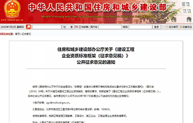 按照《國務院辦公廳關于印發(fā)全國深化“放管服”改革優(yōu)化營商環(huán)境電視電話會議重點任務分工方案的通知》(國辦發(fā)〔2019〕39號)關于大幅壓減建設工程企業(yè)資質(zhì)類別、等級的要求,我部起草了《建設工程企業(yè)資質(zhì)標準框架(征求意見稿)》。現(xiàn)向社會公開征求...