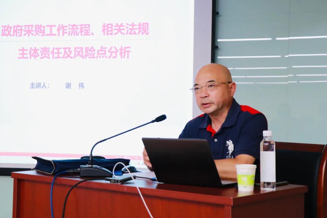 蘇州市行政審批局公共資源交易管理處處長、蘇州市安防協(xié)會監(jiān)事謝偉圍繞“政府采購工作流程、相關法規(guī)主體責任及風險點分析”展開授課。